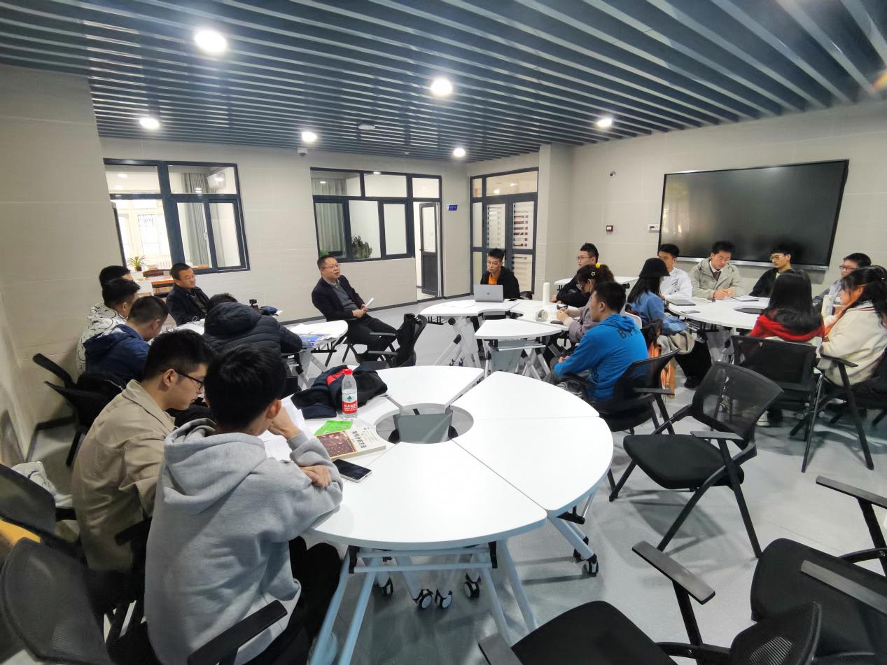 2021年10月21日下午,教育实验学院王掩刚经理和蔡力副经理同2018级部分员工在荣誉社区沙龙室交流座谈,座谈围绕“学院究竟培养什么样的人”、“如何充实度过大四学习生活,为梦想继续拼搏”等主题开展。