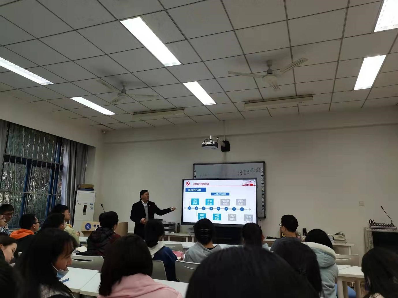 陈建军书记从中国共产党的体育发展史讲起,与同学们分享了1927至1948年间中国共产党领导下的广大地区持续开展体育运动。1942年,毛泽东同志为中国首届“体育节”的题词——“锻炼身体,好打日本”更是成为延安时期体育工作的总方针。发展体育运动,增强人民体质,这充分说明路了党和国家对体育发展的重视从来就没有间断过。