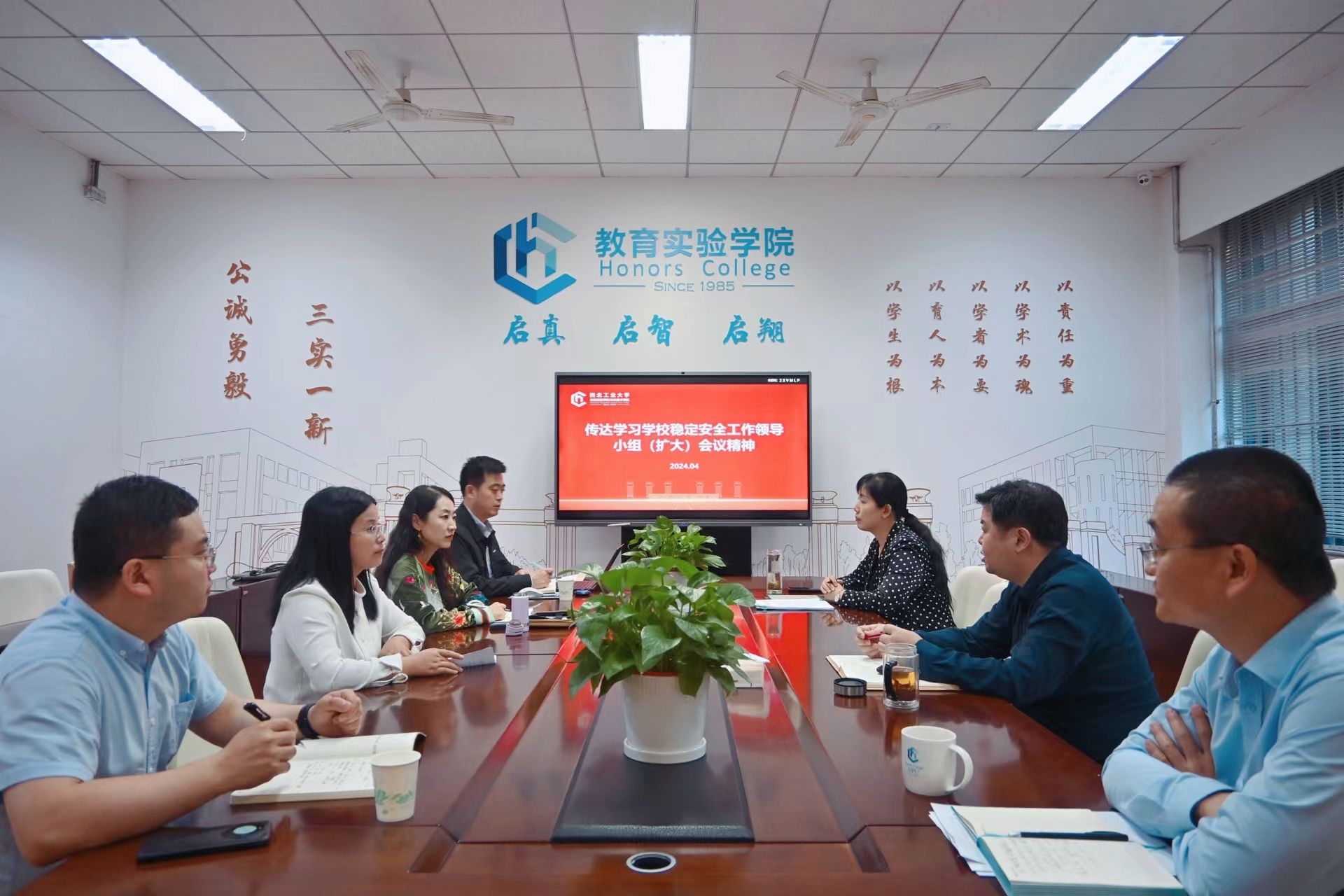 会议最后,牟蕾传达了学校稳定安全工作领导小组(扩大)会议精神,班子成员就学院稳定安全工作进行研究部署。经理林鑫强调学院领导班子及全体教职工要提高思想认识,绷紧安全稳定这根弦,进一步健全安全稳定工作机制,完善突发事件应急处置预案,不断提升安全生产治理能力,为学院高质量发展提供坚强保证。